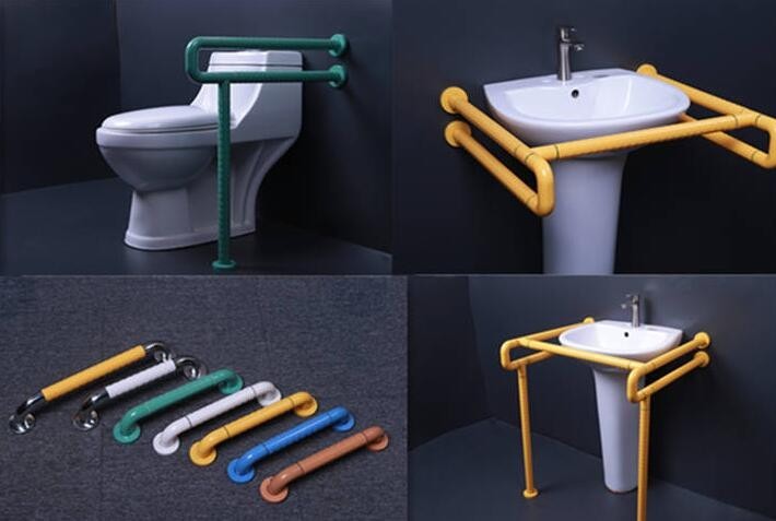 按扶手形状来分主要有以下几种类型:一字型扶手、L型扶手、洗手盘扶手,上翻扶手,U型扶手、135度扶手。按场景扶手有不同的功能有:坐便器扶手、小便器扶手、浴缸扶手、无障碍通道扶手、防撞扶手。残疾人行动不便,所以上厕所也要尽量考虑周到。马桶旁边